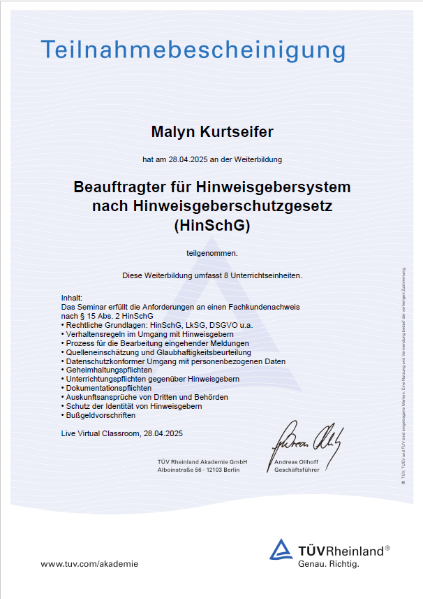 Das Hinweisgeberschutzgesetz (HinSchG) ist nun offiziell in Kraft und betrifft besonders Sie als Geschäftsführer eines mittelständischen Unternehmens mit 50 bis 249 Beschäftigten. Das Gesetz verpflichtet Sie, eine interne Meldestelle zu implementieren oder eine Ombudsperson zu bestellen. Doch was bedeutet das konkret für Sie und warum sollte es nicht nur als Pflicht, sondern insbesondere als Chance gesehen werden?